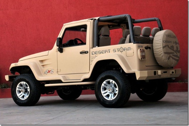 Mostrado há um ano no Salão do Automóvel, o Troller T4 Desert Storm começa agora e ser vendido. Serão apenas 45 unidades produzidas – e destas 25 já estão vendidas –, que se destacam pela pintura Bege Atacama fosco, capota rígida removível, guincho com capacidade de 4,3 toneladas, para-choques especiais, peito de aço, protetores de lanternas, sobrecapa de neoprene nos bancos e rodas de alumínio aro 15".